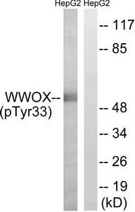 | Note | WWOX (Phospho-Tyr33) antibody detects endogenous levels of WWOX only when phosphorylated at tyrosine 33. |